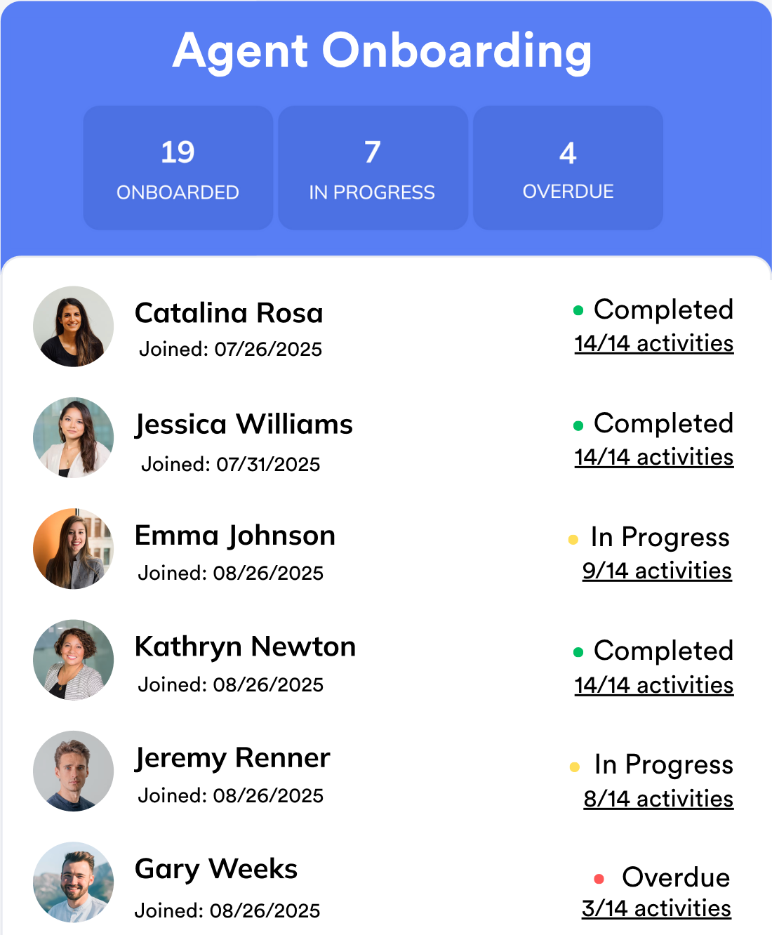 You’re ready to grow and bring on more agents — but you're still in production, with limited time to build systems or handhold every recruit. Agently acts as your growth partner, giving you ready-made playbooks from $500M+ teams that you can plug in right away to onboard faster, train smarter, and scale with confidence.